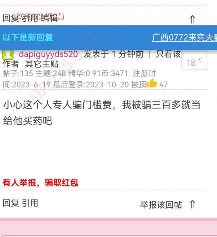 回复 18# dapiguyyds520 自己看看标签,有人举报 ,骗取红包。
